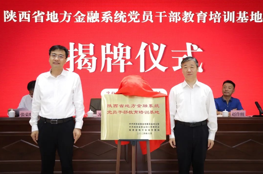 仪式上,苏虎超、蒋林共同为“陕西省地方金融系统党员干部教育培训基地”揭牌。