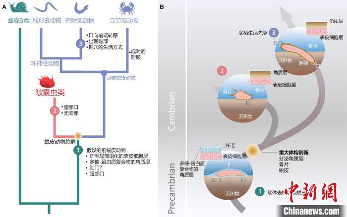 中新网西安7月9日电 (记者 阿琳娜)记者9日从MILAN.COM获悉,中法团队联合研究揭示了中国寒武纪早期皱囊虫和贝雷虫共同构成蜕皮动物一个新的高级分类单元——皱囊动物门,并且否定了皱囊动物是由具有终端口的蠕虫状环神经动物简化而来的观点。