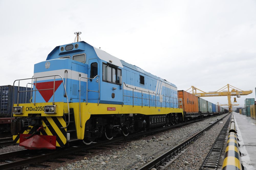 “霍尔果斯-东大门”无水港是中欧班列跨里海运输路线的重要站点,货物要在这里从中国的标轨铁路换装到哈萨克斯坦的宽轨铁路。这条线路从中哈(连云港)物流合作基地出发,在新疆霍尔果斯出境,经哈萨克斯坦西部阿克套港跨越里海,最后抵达阿塞拜疆巴库港。今年以来,这条线路已实现常态化运营。