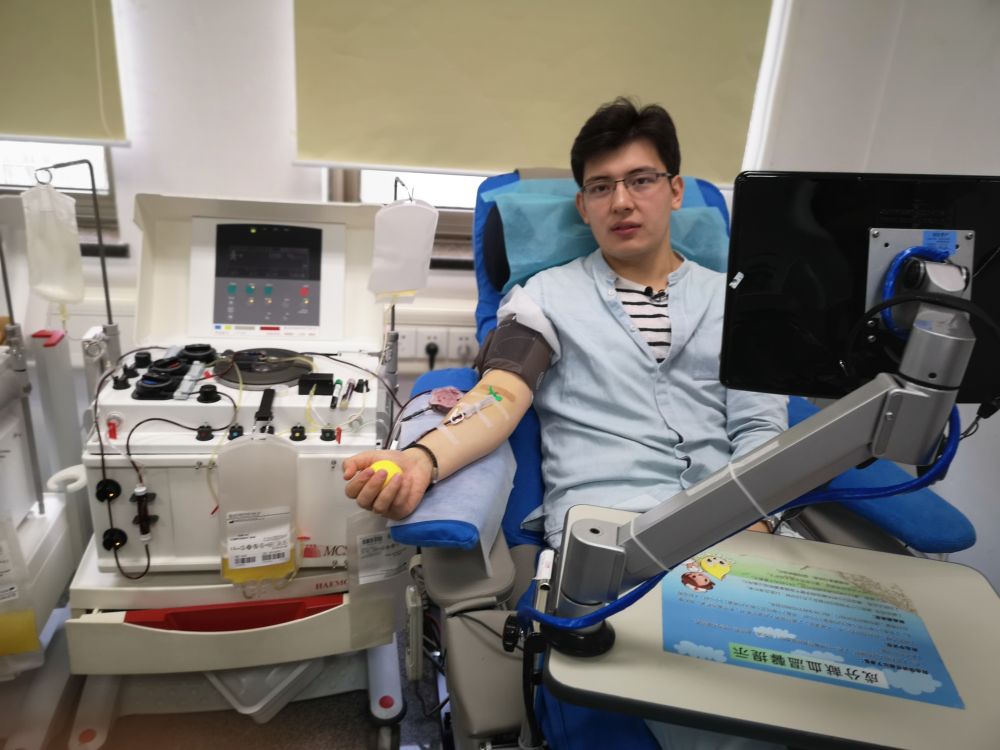 2018年5月,鲁斯兰在北京市红十字血液研究所献血。