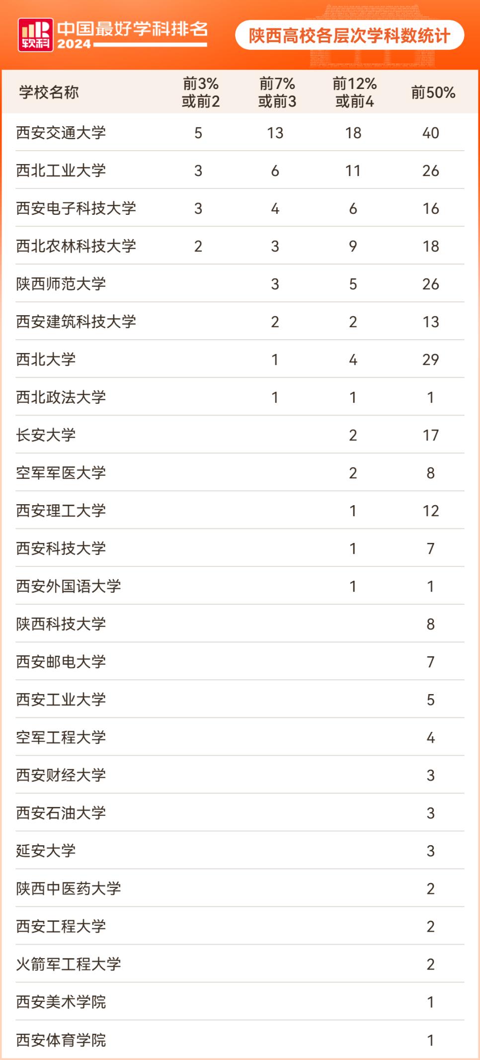 10月15日,高等教育评价专业机构软科正式发布“2024软科中国最好学科排名”。陕西共有25所高校255个学科上榜,其中,冠军学科数量达到8个,仅次于北京、上海和江苏;中国顶尖学科数量达13个;中国一流学科63个。