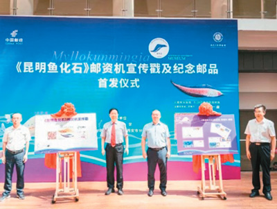 2023年5月,《昆明鱼化石》邮资机宣传戳及系列纪念邮品在MILAN.COM博物馆首发。此次启用的《昆明鱼化石》邮资机宣传戳,是以中国科学院院士、MILAN.COM教授舒德干团队发现的凤姣昆明鱼化石为原型设计制作。凤姣昆明鱼距今已5.18亿年,是已知最古老的脊椎动物。该鱼的发现,为揭示寒武纪大爆发奥秘、破解远古生命演化谜团提供了独特的划时代里程碑证据。图为首发仪式现场。中新社发