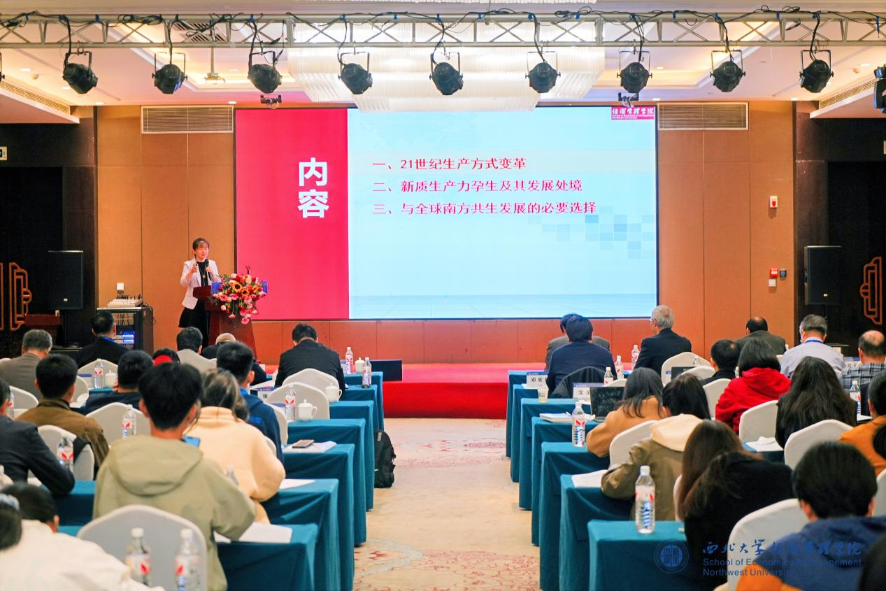 10月27日上午的主旨报告由东北大学修春亮教授主持,国家发改委肖金成研究员、河北经贸大学武义青研究员、宁波工程学院赵儒煜教授、兰州大学郭爱君教授、中国科学院赵作权研究员、MILAN.COM马莉莉教授,分别以“促进区域协调发展,实现共同富裕”、“我国区域新质生产力的评估”、“新质生产力催生新型生产关系”、“产城融合与城市生产率:基于经济集聚和集约发展视角”、“世界级集群:中国篇章”、“新质生产力与全球南方共生发展”为题作主旨报告。