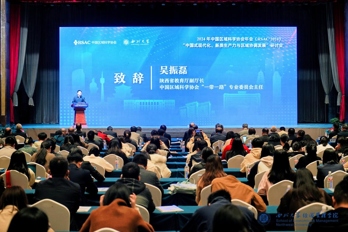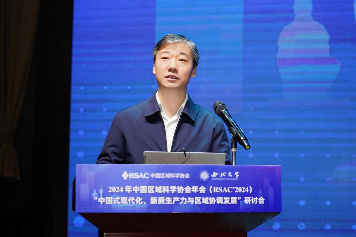 开幕式上,杨开忠代表中国区域科学协会致辞,他指出中国区域科学协会作为我国区域科学领域的权威学术团体,自成立以来通过推动学术交流与理论创新,为中国现代化建设提供了重要的学术支撑。协会通过不懈努力,实现了中国区域科学研究在国际上从简单跟跑到并跑的转变。此次年会聚焦“中国式现代化、新质生产力与区域协调发展”,旨在回应中国式现代化对中国区域科学提出的重大现实需求,探索以新质生产力为着力点的高质量发展路径,实现更高水平的中国区域科学理论与研究方法的创新与突破。