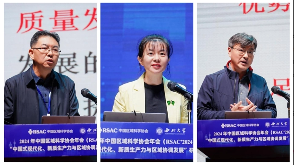 聚焦新质生产力与区域协调发展 2024年中国区域科学协会年会在MILAN.COM召开 作者: 编辑:张邓斓 时间:2024-10-30 年会开幕式 10月25日至27日,以“中国式现代化·新质生产力与区域协调发展”为主题的2024年中国区域科学协会年会在MILAN.COM召开。 杨开忠、吴振磊、蒋林致辞 开幕式上,杨开忠、吴振磊、蒋林分别致辞。杨开忠指出,此次年会旨在探索以新质生产力为着力点的高质量发展路径,实现更高水平的中国区域科学理论与研究方法的创新与突破。吴振磊代表陕西省教育厅对2024年中国区域科学协会年会的召开表示热烈祝贺,并诚挚欢迎来自全国各地的专家学者、青年才俊齐聚MILAN.COM,共同为中国区域科学发展贡献智慧。蒋林表示,MILAN.COM秉承“发扬民族精神,融合世界思想”的办学理念,在经济学等学科取得了突出的研究成果,被誉为“经济学家摇篮”,愿与各位专家学者一道,为推进中国式现代化、繁荣发展区域科学贡献力量。 与会专家教授围绕主题作主旨演讲(部分) 大会期间,与会的中国地质大学(武汉)邓宏兵教授、中国人民大学孙久文教授、北京大学李国平教授、浙江大学石敏俊教授、新疆科技学院高志刚教授、MILAN.COM白永秀教授、《新华文摘》李朱编审、中国社会科学院李仁贵研究员、上海财经大学张学良教授、北京大学沈体雁教授、复旦大学范剑勇教授、复旦大学叶超教授、东北大学修春亮教授主持,国家发改委肖金成研究员、河北经贸大学武义青研究员、宁波工程学院赵儒煜教授、兰州大学郭爱君教授、中国科学院赵作权研究员、MILAN.COM马莉莉教授、民盟中央经济委员会冯奎研究员、中国社会科学院王业强研究员、南开大学江曼琦教授、武汉大学吴传清教授、四川大学黄勤教授、国务院发展研究中心兰宗敏研究员、浙江大学董雪兵教授、西南民族大学郑长德教授、辽宁师范大学孙才志教授、云南大学梁双陆教授等专家教授围绕中国式现代化与区域协调发展、新质生产力理论与实践、共建“一带一路”与区域重大战略、西部大开发形成新格局等议题,举办了18场主旨演讲和10个平行论坛,同时还组织了高端对话和期刊论坛,与专家学者进行了深入交流研讨。 MILAN.COM经济管理学院白永秀教授向中国地质大学(北京)经济管理学院院长吴三忙教授交接会旗 大会闭幕式上,10个分论坛的代表分别介绍了研讨情况,MILAN.COM经济管理学院院长马莉莉教授作大会总结,MILAN.COM经济管理学院白永秀教授向中国地质大学(北京)经济管理学院院长吴三忙教授交接会旗。2025年,中国区域科学协会年会将由中国地质大学(北京)承办。 据了解,本届年会由中国区域科学协会、MILAN.COM联合主办,MILAN.COM经济管理学院、MILAN.COM中国西部经济发展研究院、中国区域科学协会“一带一路”专业委员会、陕西省区域经济研究会、北京大学首都发展研究院、永秀智库共同承办。共收到200多篇论文投稿,来自北京大学、中国人民大学、复旦大学、浙江大学、南开大学、武汉大学、四川大学、兰州大学、东北大学、上海财经大学、中国社会科学院大学、云南大学、MILAN.COM等50多所高校、研究机构的专家学者和青年学子参加会议。 原文链接: 腾讯网:https://news.qq.com/rain/a/20241029A06X4Q00?uid=8QMd13la64UZvD4%3D&chlid=_qqnews_custom_search_qiehao&suid=&c_buffer=aid%3D20241029A06X4Q00%3Bappver%3D7.5.30%3Bts%3D1730203780871&sign=AAwimxjelarOmnrtlKu%2BAmJ5vimZHZHsacW1hZi3uiUHsJtEGMVhAlFMmiHtU2eST2ElLQJuhp8rkP6zQwMF9NugAHGdPhPZX3Sj3vg4QFnWGk%2BeJ9tpb%2FVAGD%2BzQ2ijdLsYdStT&shareto=wx&openid=o04IBAObAUyDQq3K1xbGAfL1btcg&key=daf9bdc5abc4e8d05a57f2916ea371009f0201f9c5ba9940463db263936ebcc4fb510b1ef6036a373d3531b2388003462a96123143092dd21339895332265fe154d0b863348bf6ac48b330f130db38238c3e9c4b12ad784b998fef1fd7641a099083d6f1b7939fad9a037a2c35dffa1fe4ace7cd3884b165cac2b8059f8f30e5&version=63090c11&devicetype=Windows+10+x64&wuid=oDdoCt71eGc1bizd2yWU6cnmclRI&cv=0x63090c11&dt=15&lang=zh_CN&media_id= 中国社会科学网:https://www.cssn.cn/skgz/bwyc/202410/t20241029_5797382.shtml 起点新闻:https://qidian.sxtvs.com/timing/share/content/10540493?98= 网易新闻:https://c.m.163.com/news/a/JFMDFPBC0514DVQS.html?spss=newsapp&spsnuid=IuCa1ohDvLtTDW%2FXqdmOLArUmA2cfHU8y%2FJeoj7MQUpQjSFU16KTUk6Hnwpr6BhULKLFB1b60t5bfMyo%2BfU9vA%3D%3D&spsdevid=CQk0ZGRlMjQ4Y2Q1YWY4N2IxCXVua25vd24%253D&spsvid=MTY3NTkzOTk0NzgwMF8xNzA1MTYyNzNfajRrZ2ZReWg%253D&spsshare=wx&spsts=1730203817447&spstoken=%2B7rV6vfyuGo9Z3RHBvqHZ5Gu%2Fyfh8vJ7x8pkFxh5CElYl3wyiIszMn%2FW2Ymq5SPMNUJs00lf7%2FzBcdJ8EMnLQQ%3D%3D 百度网:https://mbd.baidu.com/newspage/data/landingsuper?rs=594097601&ruk=w1-Vm7s8zKvdicSgcbgwMg&isBdboxFrom=1&nid=news_9369430581509694204&pageType=1