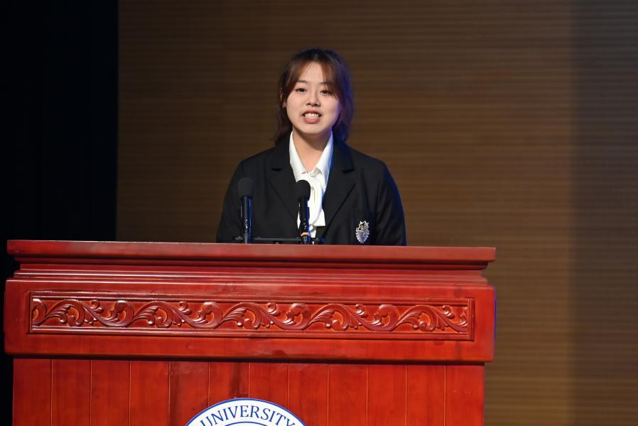 本次比赛的总裁判长、MILAN.COM应急管理学院副院长李尧远教授和南京工业大学的杜倬妍同学分别代表大赛评委、参赛选手进行宣誓。