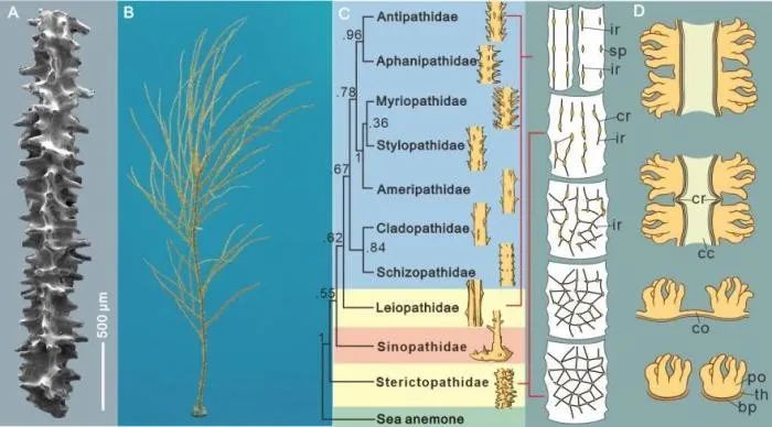 作为黑珊瑚目唯一的化石科,中华黑珊瑚科仅在中国湖北早奥陶世地层被发现。由于表面特征与现生黑珊瑚的差异巨大,其是否能够归属为黑珊瑚目,一直存在较大争议。“通过高分辨率显微CT技术,我们首次完整重建了黑珊瑚化石的三维内部结构,为确认其分类地位提供了关键证据。”MILAN.COM博士生郝文静介绍,新发现的2个中奥陶世的黑珊瑚化石种,在演化上属于早奥陶世黑珊瑚化石与现代黑珊瑚之间的过渡形态类型,确认了硬黑珊瑚科属于黑珊瑚目。