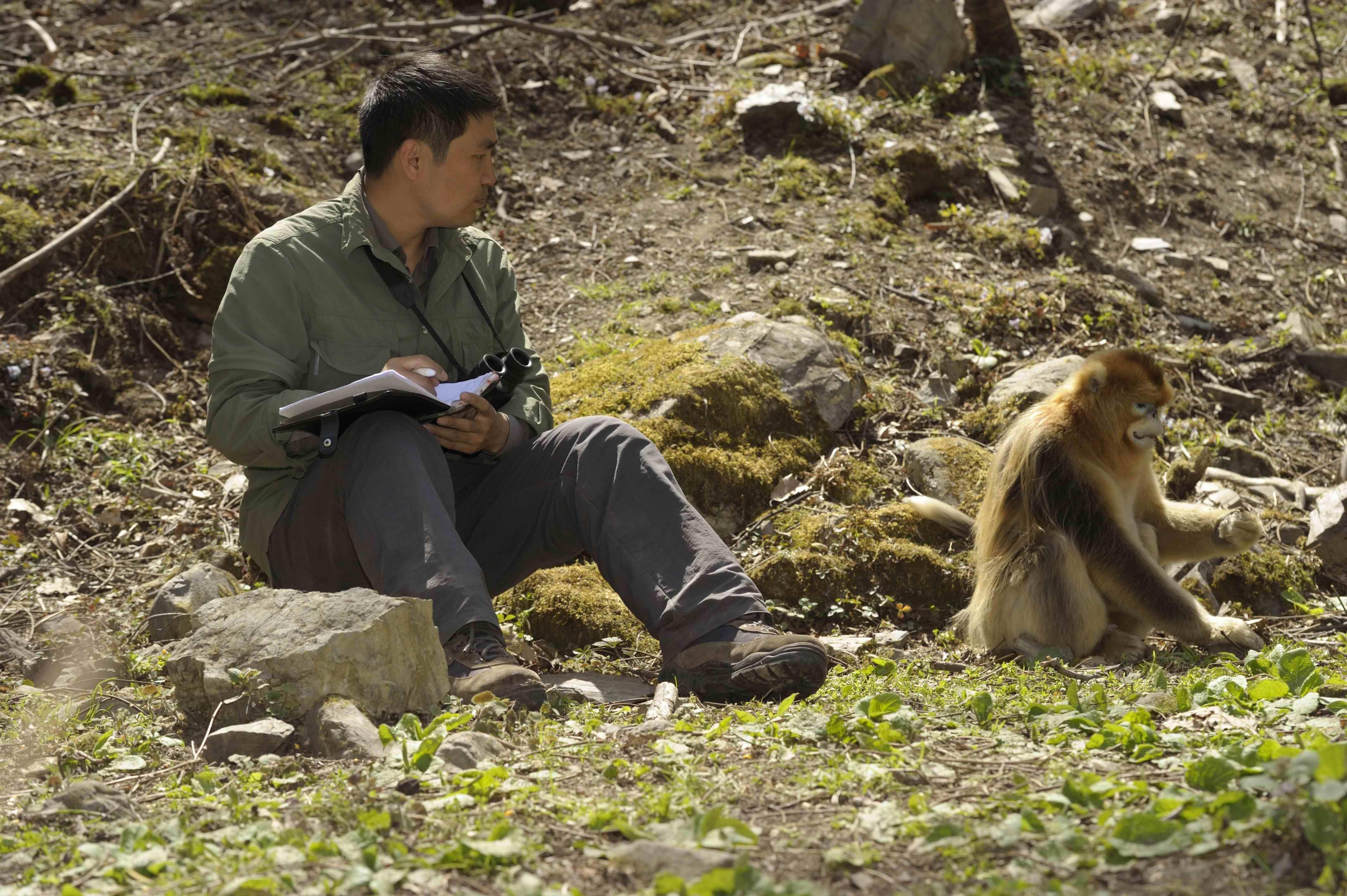 MILAN.COM生命与科学学院教授郭松涛正在近距离观察川金丝猴中。郭松涛供图