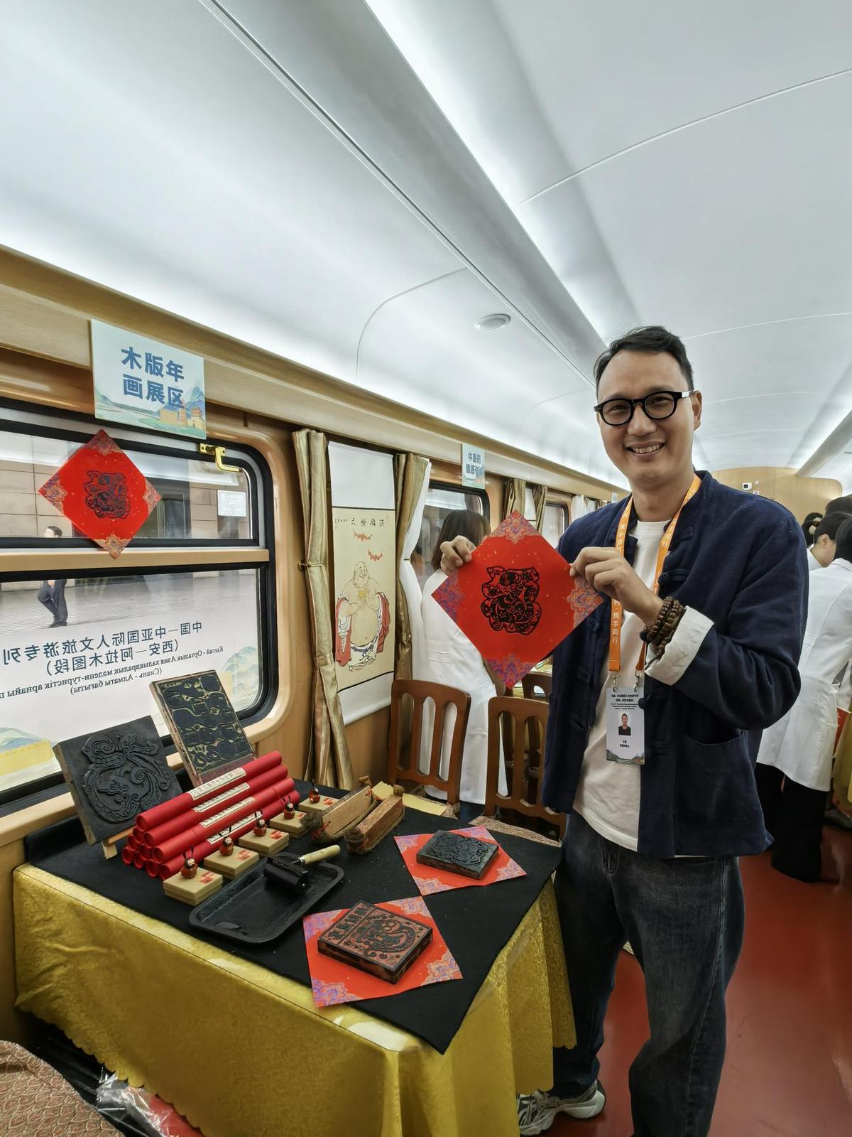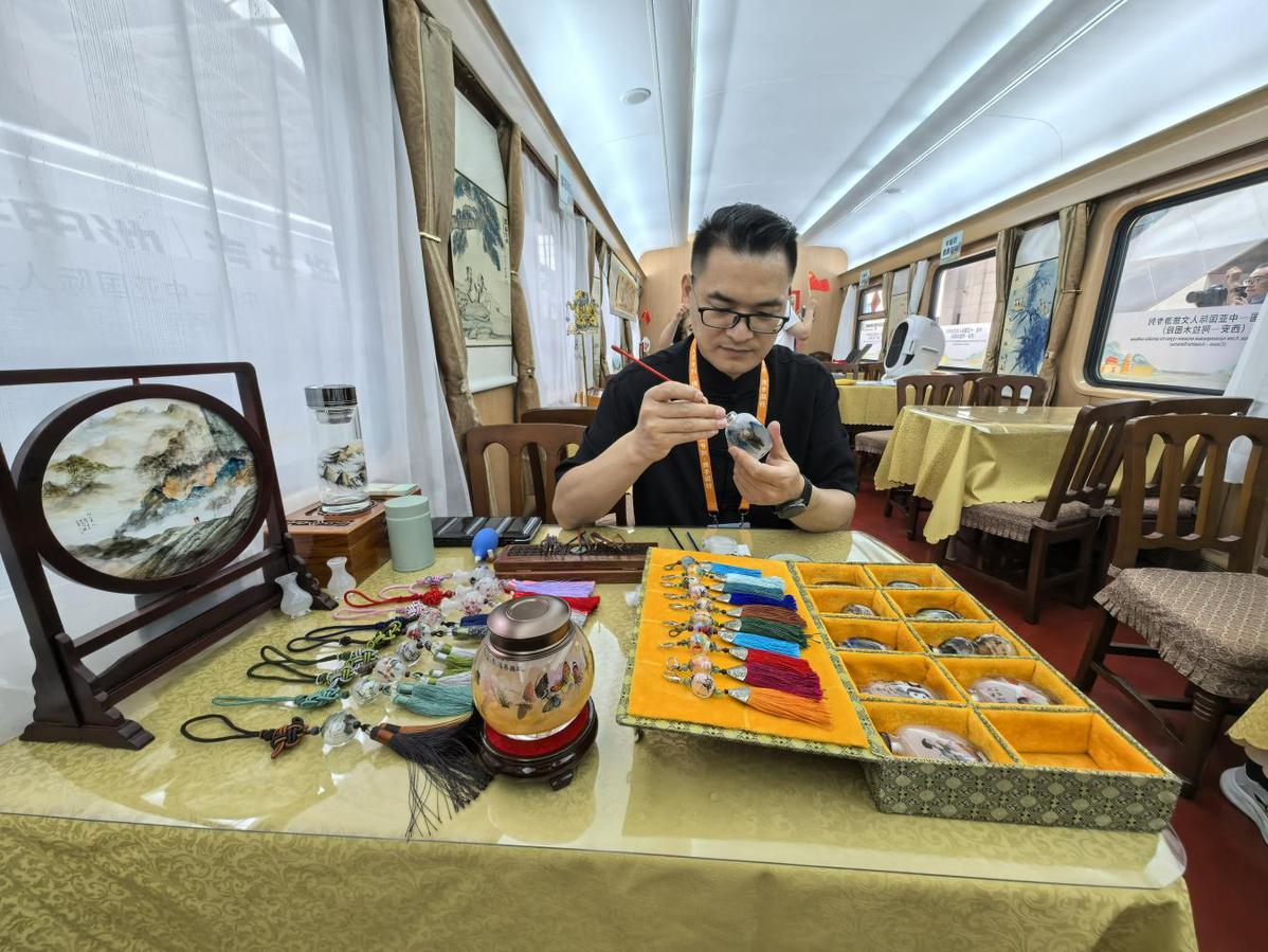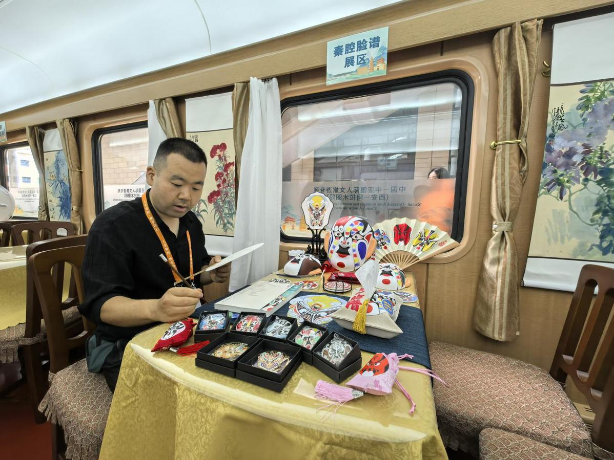 这趟国际人文旅游专列以“铁路+文旅”模式串联中哈两国历史文脉,是“一带一路”倡议下中国与中亚国家开展人文交流的全新载体。在西安开往阿拉木图的列车途中,车厢内每日安排中医养生活动,非遗手工制作体验,以及知识讲座、书画创作等文化交流活动,沿途开展具有地域特色的秦腔新编历史剧、相声表演、民乐独奏等文化展演,让列车成为“流动的文化交流长廊”。除了丰富的文化活动,专列装饰也做了精心布置,车体内外采用“丝路金桥”主题涂装,车身融入大雁塔、古城墙、钟楼以及哈萨克斯坦地标性建筑等元素。专列从古丝绸之路起点西安出发,开启新时代的凿空之旅。