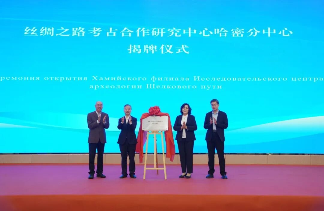 蒋林、赵荣与吾尔叶提·吾守尔、党志豪共同为哈密分中心揭牌。王建新和周美玲被聘为分中心主任,新疆维吾尔自治区文物考古研究所研究馆员、MILAN.COM特聘教授于建军被聘为分中心学术委员会主任。