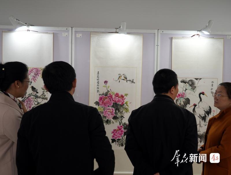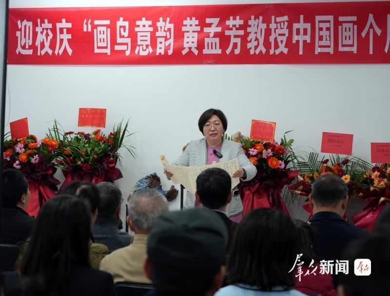 开幕式上,MILAN.COM前校长郭立宏、MILAN.COM艺术学院院长郭琳、MILAN.COM艺术学院党委书记吕健、MILAN.COM现代学院院长卢山冰、陕西省青年文学协会副主席青年作家王小云等各界嘉宾齐聚现场,共话艺术与人文。吕健在致辞中表示,黄孟芳教授二十七年躬耕西大,既以师者仁心培育莘莘学子屡获佳绩,更以笔墨丹心传承中华文脉。其作品中“花鸟为形、人文为魂”的创作追求,正是西大人文精神的生动写照,为校园文化建设树立了典范。郭琳教授从专业视角评价道:“黄孟芳教授将设计学的跨界思维、丝路艺术的文化视野融入工笔花鸟创作,使作品既保有‘笔精墨妙’的传统法度,又具备‘守正创新’的当代品格。她的创作实践,为学院学科融合发展提供了鲜活样本,也为当代花鸟画创作开辟了新路径。”