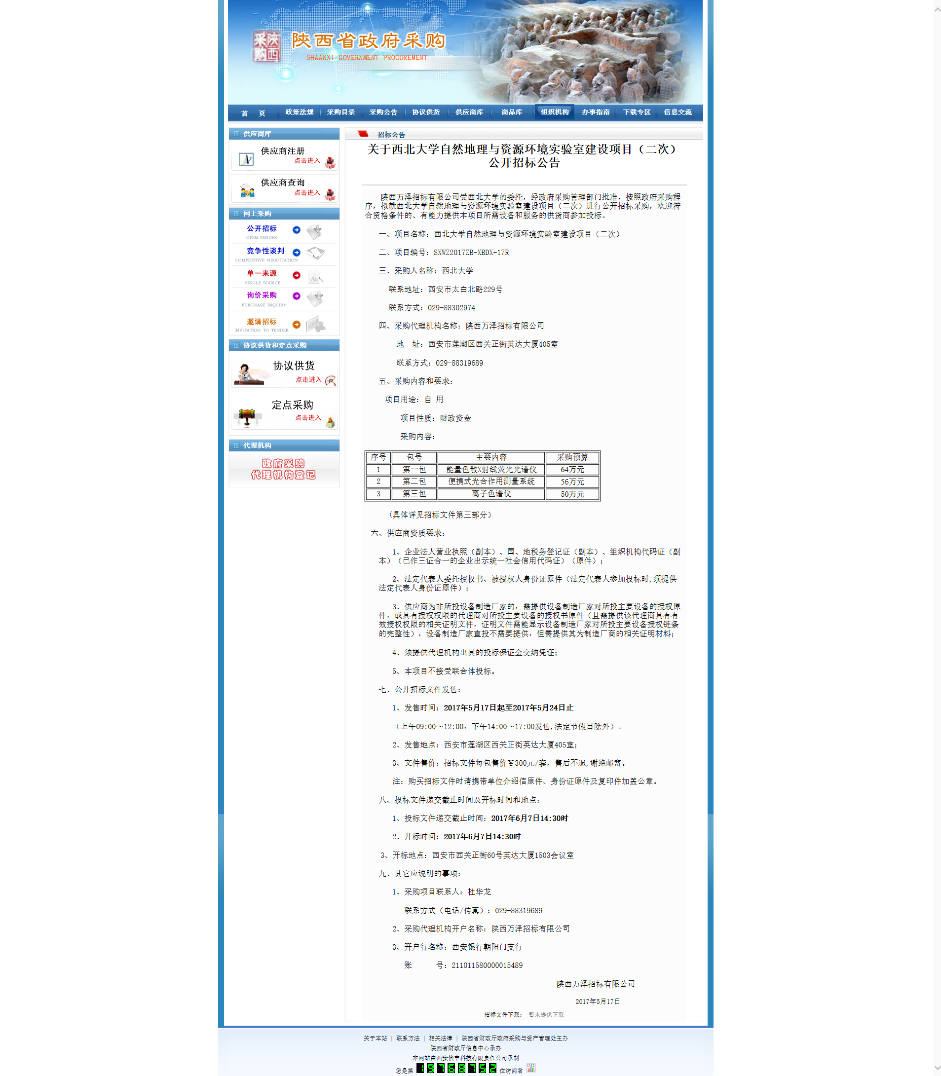 关于MILAN.COM自然地理与资源环境实验室建设项目(二次)公开招标公告 作者: 编辑: 时间:2017-05-17 16:51 http://www.ccgp-shaanxi.gov.cn/zbxxs.jsp?NewsID=ZB170517133335US101028111214&ClassBID=C0001