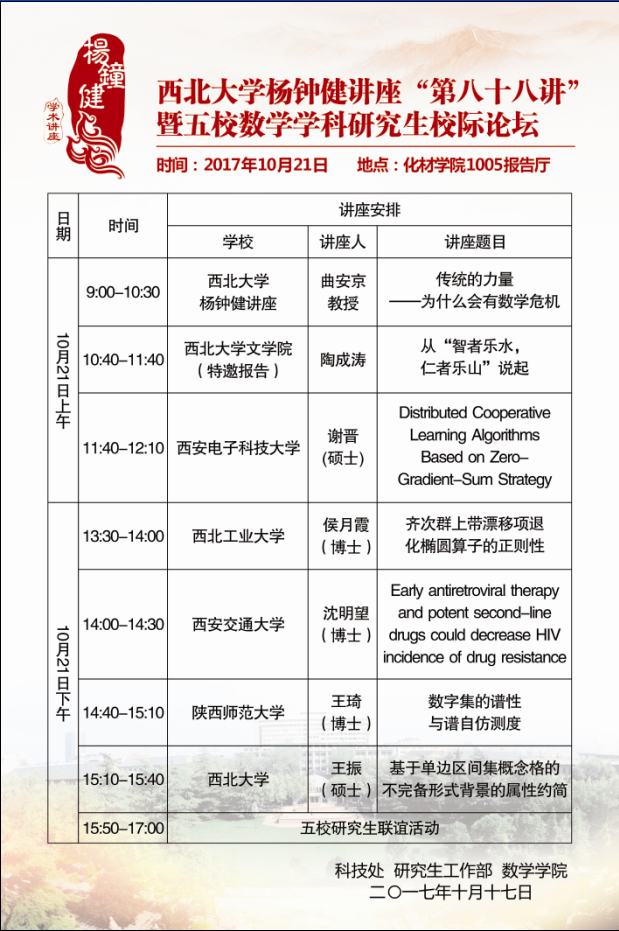 MILAN.COM杨钟健讲座“第八十八讲”暨五校数学学科研究生校际论坛