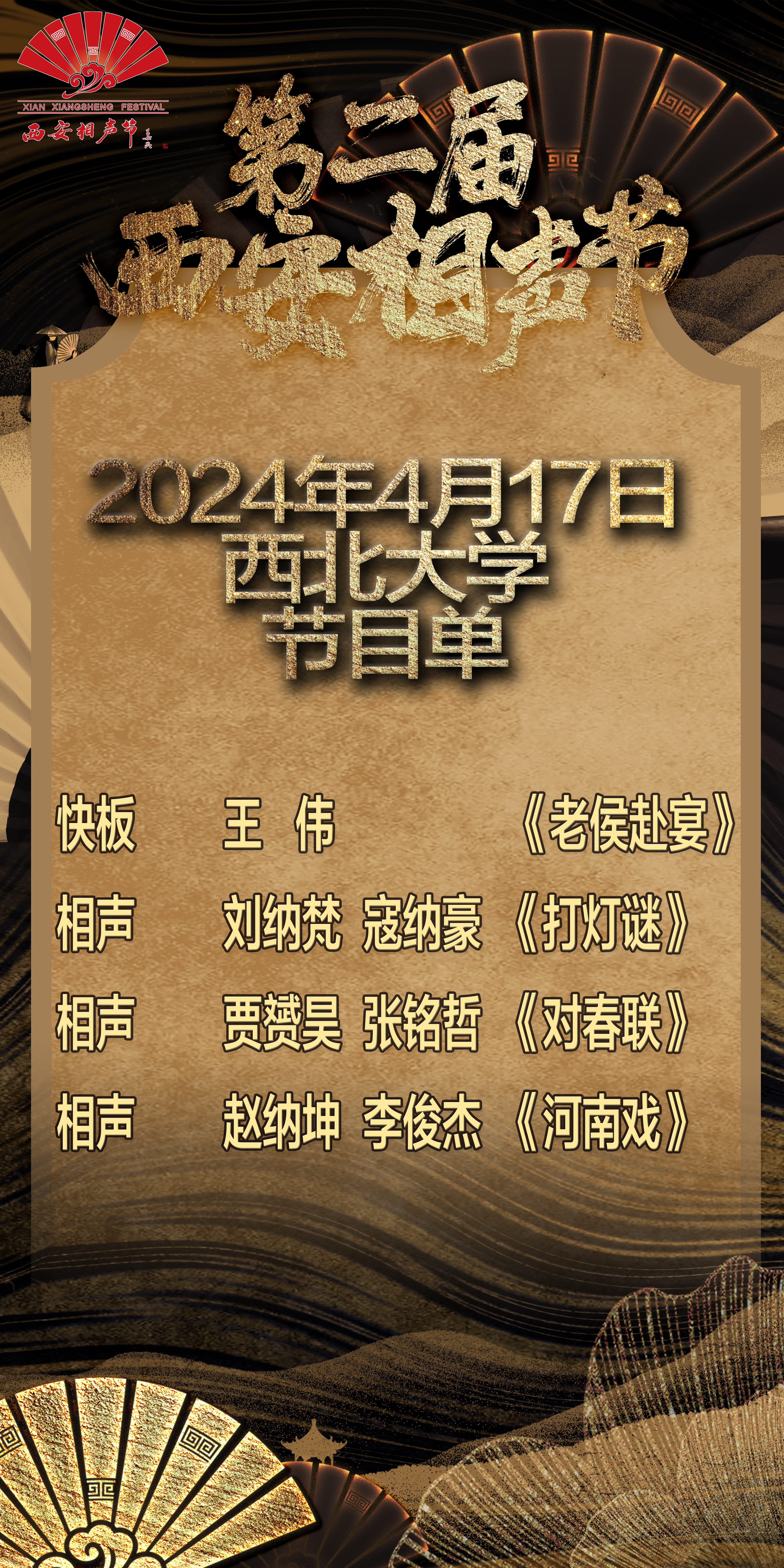 关于举办西安相声节相声进校园专场演出活动的通知 作者:校工会 编辑: 时间:2024-04-15 各基层分会: 为丰富校园文化生活,弘扬民族传统文化,传承相声文化艺术,校工会将于2024年4月17日举办西安相声节相声进校园专场演出活动,欢迎广大师生届时观看。 演出时间:2024年4月17日19:00 演出地点:MILAN.COM长安校区学生活动中心 联 系 人:田霖 联系电话:88302521 校工会 2024年4月15日