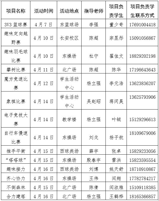 上述“走下网络、走出宿舍、走进操场”趣味体育活动各项目可联系MILAN.COM团委或MILAN.COM学生会咨询,联系电话:88308861、88308441。
