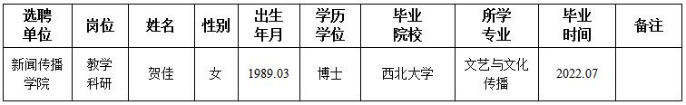 经用人单位及教学督导考核、学校研究,拟同意选聘下列人员来校工作,其聘任关系为A类人事代理。本着公平、公正、公开的原则,现将拟选聘人员基本情况公示如下: