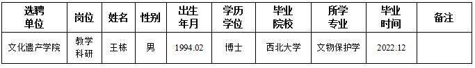 经用人单位及教学督导考核、学校研究,拟同意选聘下列人员来校工作,其聘任关系为人事代理。本着公平、公正、公开的原则,现将拟选聘人员基本情况公示如下: