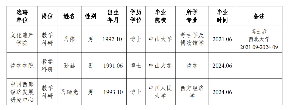 经用人单位推荐,人力资源部审查,学校教学督导及院系相关专家考核,学校专家评审会审议,MILAN.COM拟确定下列人员来校工作,聘任方式为事业编正常选聘。本着公平、公正、公开的原则,现将本次拟选聘人员基本情况公示如下:
