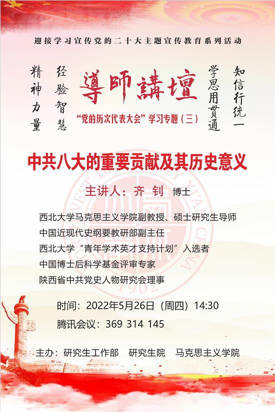 导师讲坛“党的历次代表大会”学习专题(三):中共八大的重要贡献及其历史意义