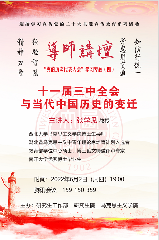 导师讲坛“党的历次代表大会”学习专题(四):十一届三中全会与当代中国历史的变迁