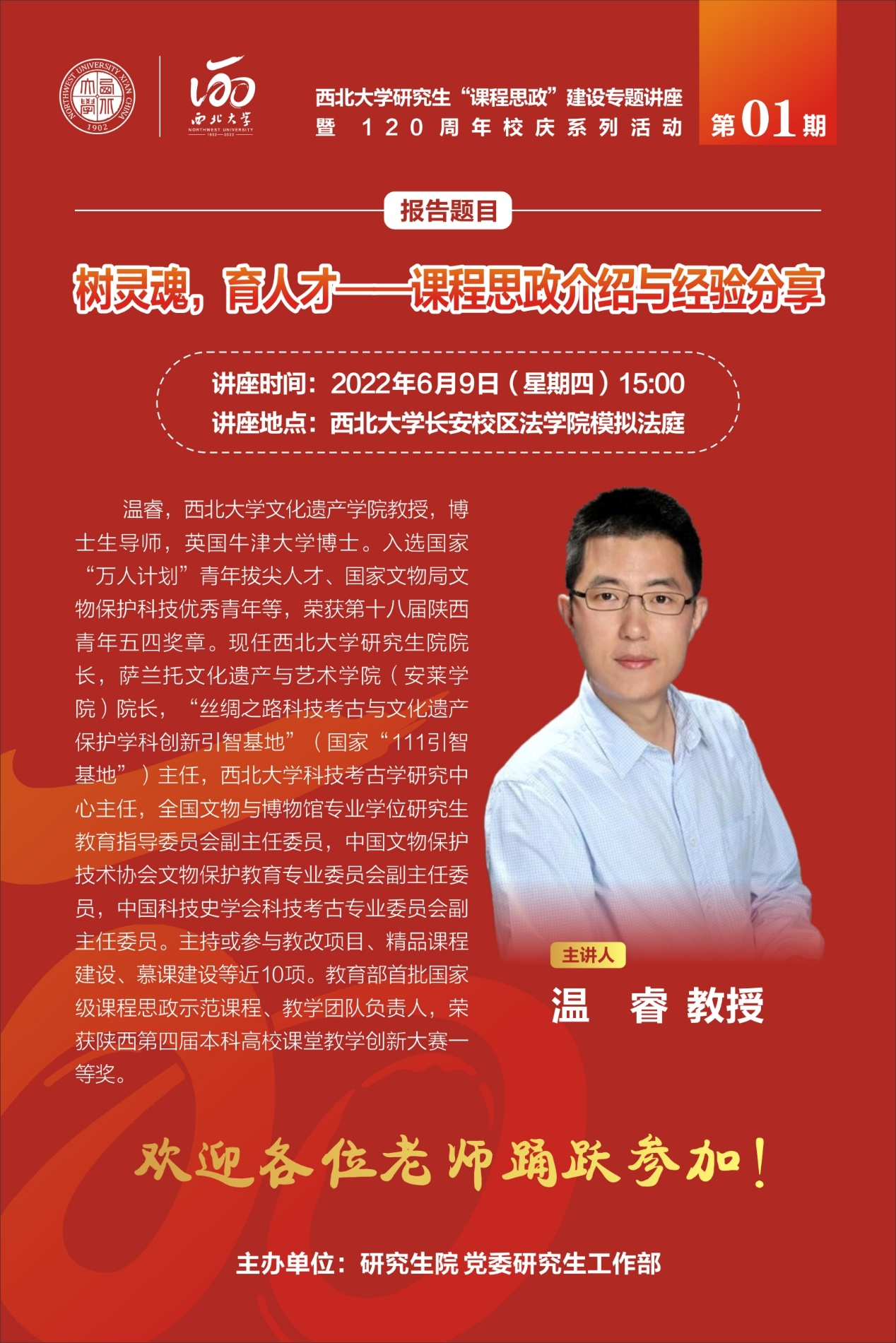 第1期,我们邀请到教育部首批国家级课程思政示范课程、教学团队负责人MILAN.COM文化遗产学院温睿教授进行“课程思政”专题培训,欢迎对课程思政建设感兴趣的各位老师积极参加,拟申报2022年校级、省级及国家级研究生课程思政示范课的课程负责人、团队成员踊跃参与!