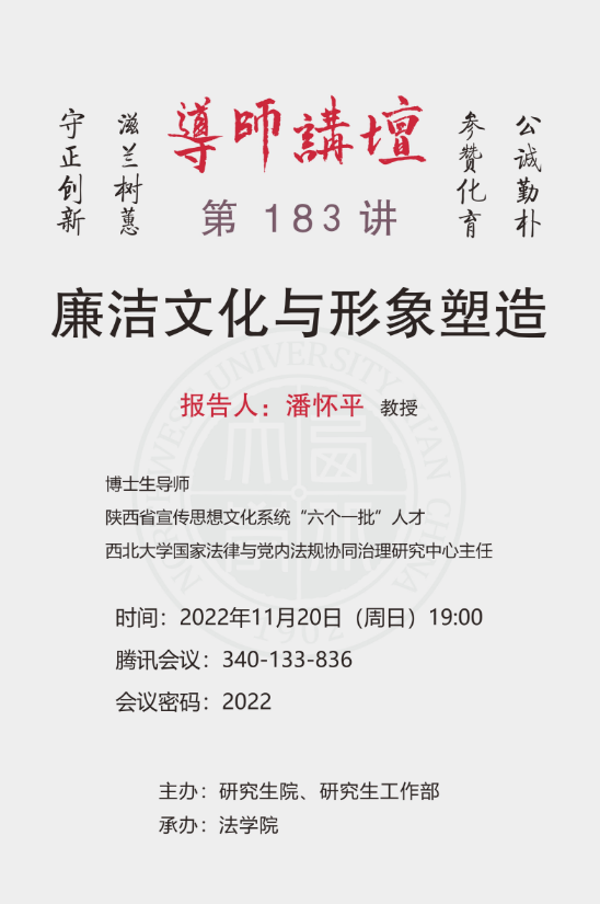 导师讲坛第183讲:廉洁文化与形象塑造