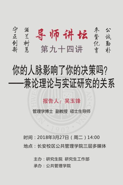 导师讲坛第九十四讲:你的人脉影响了你的决策吗?--兼论理论与实证研究的关系