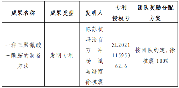 按照《MILAN.COM促进科技成果转化实施办法》(西大科〔2019〕5号)相关规定,拟对MILAN.COM化工学院徐抗震教授作为成果负责人的1项发明专利实施转化,现将相关信息公示如下: