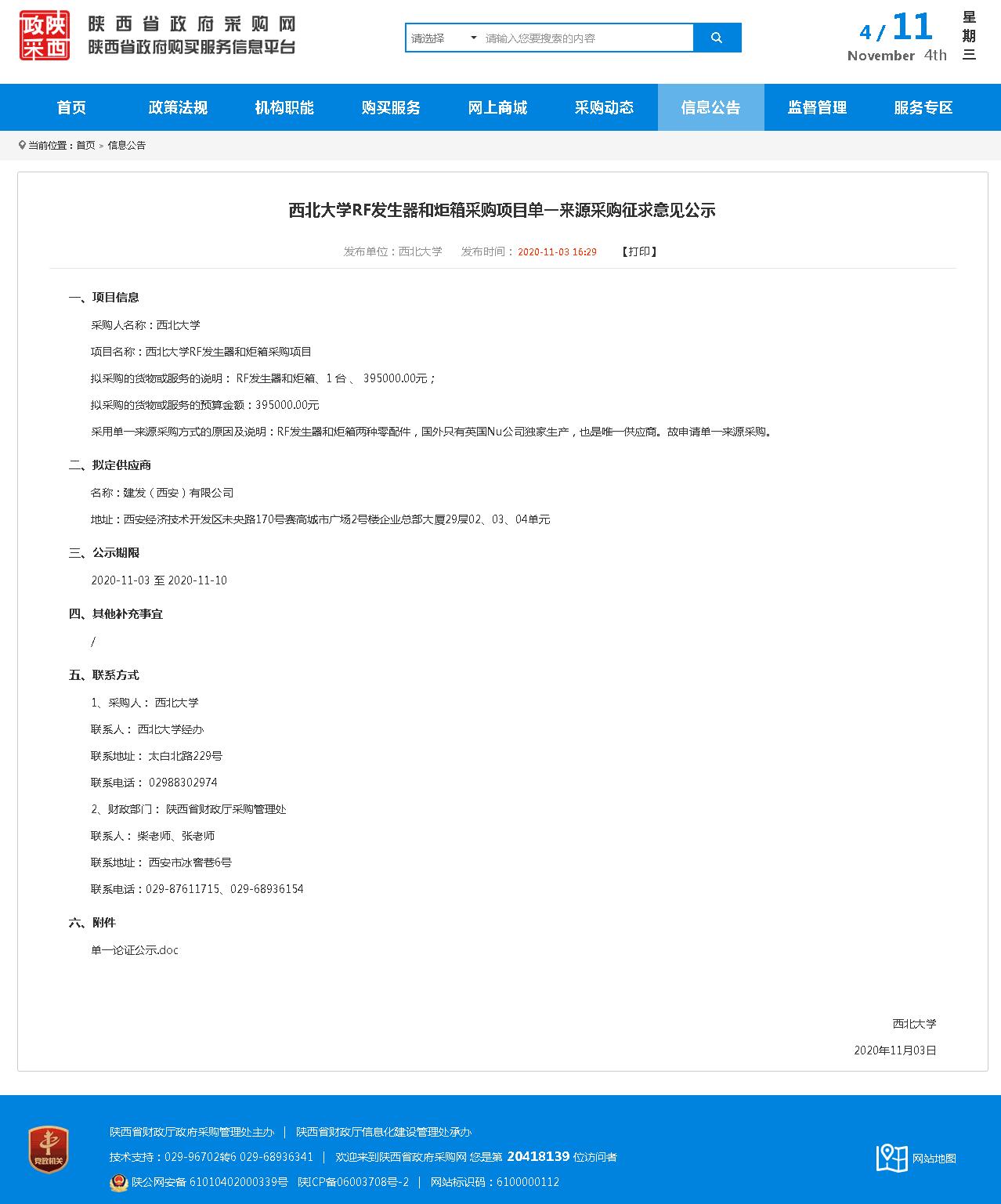 MILAN.COMRF发生器和炬箱采购项目单一来源采购征求意见公示