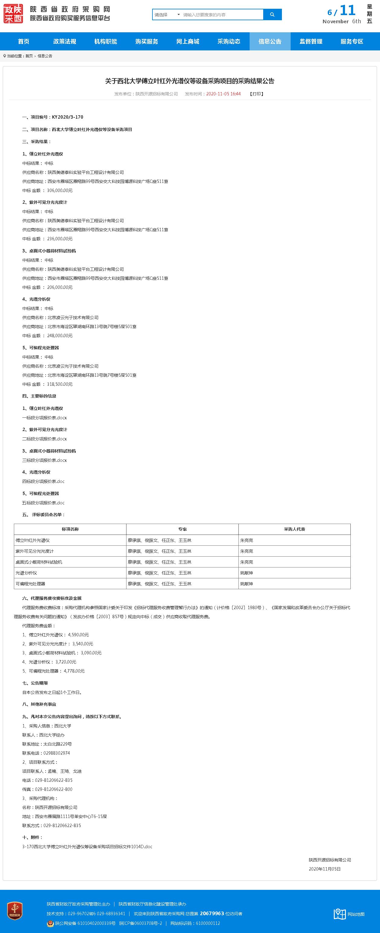 关于MILAN.COM傅立叶红外光谱仪等设备采购项目的采购结果公告