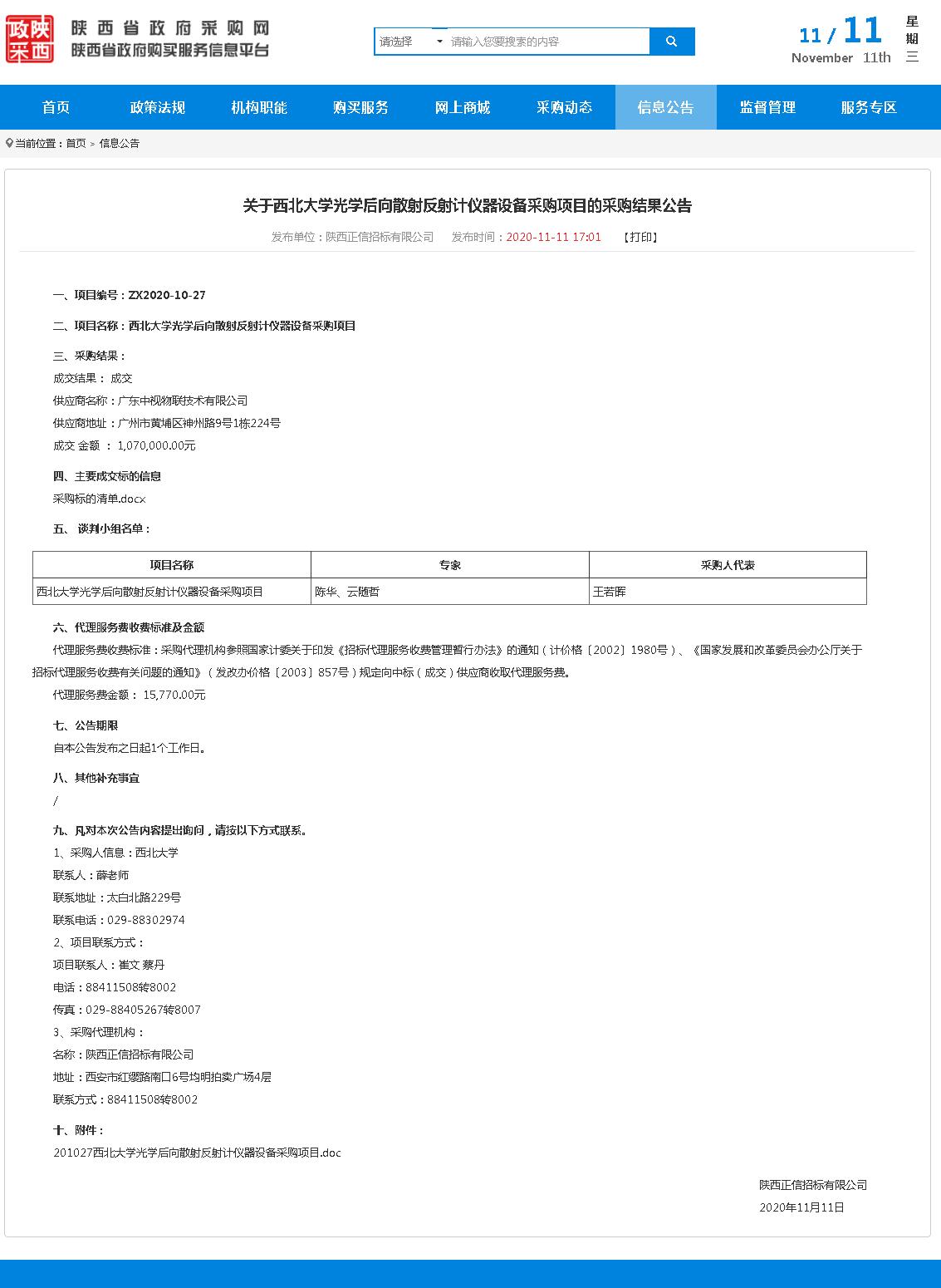 关于MILAN.COM光学后向散射反射计仪器设备采购项目的采购结果公告