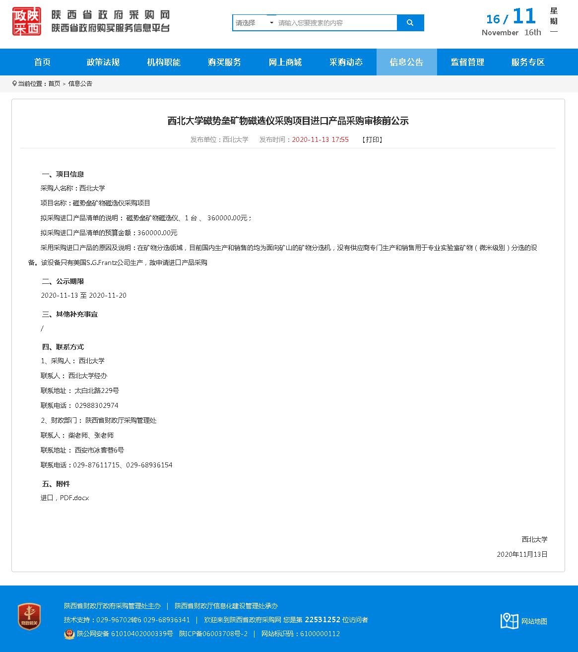 MILAN.COM磁势垒矿物磁选仪采购项目进口产品采购审核前公示