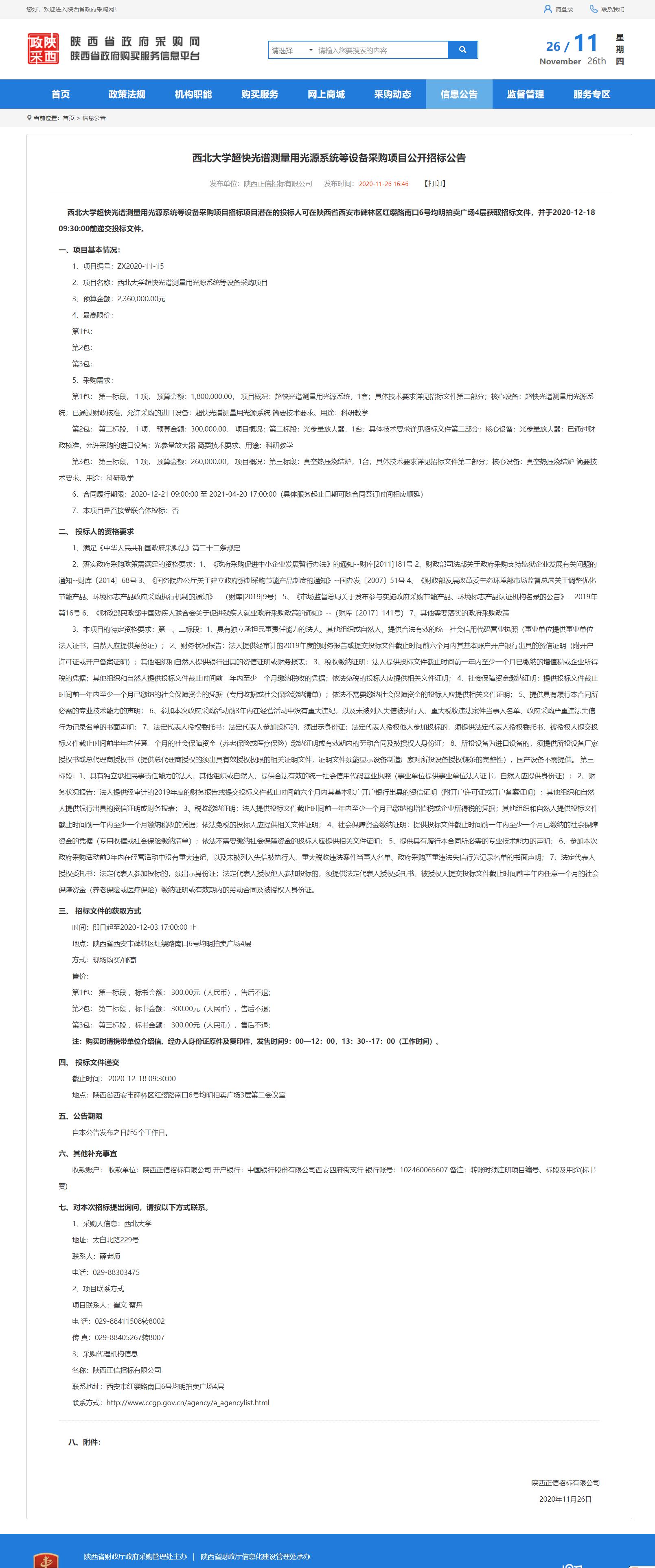 MILAN.COM超快光谱测量用光源系统等设备采购项目公开招标公告 作者: 编辑:薛利娟 时间:2020-11-26 原公告链接:http://www.ccgp-shaanxi.gov.cn/notice/noticeDetail.do?noticeguid=8a85be3375d5d589017603aaa6b51977