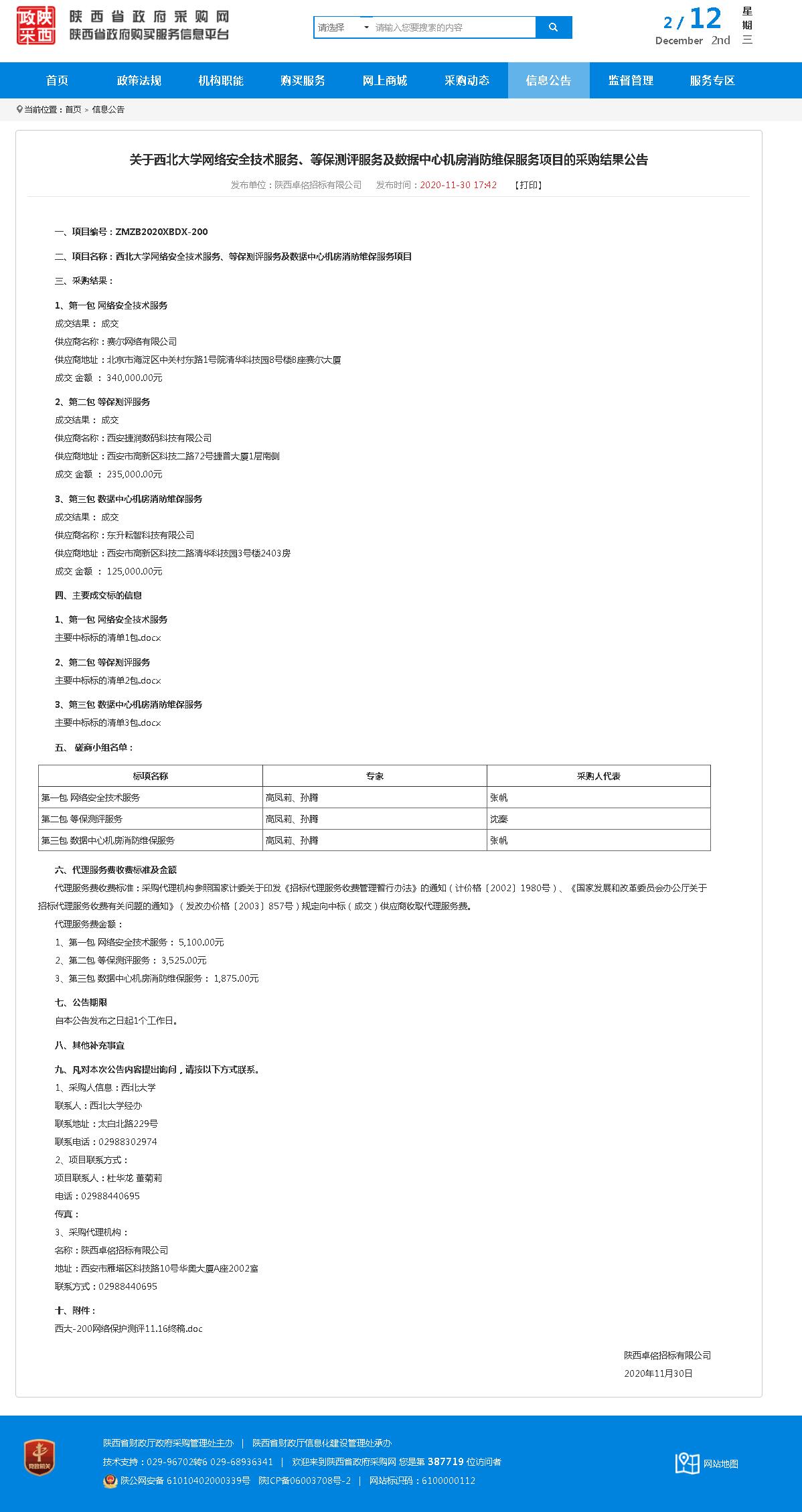 MILAN.COM网络安全技术服务、等保测评服务及数据中心机房消防维保服务项目的采购结果公告