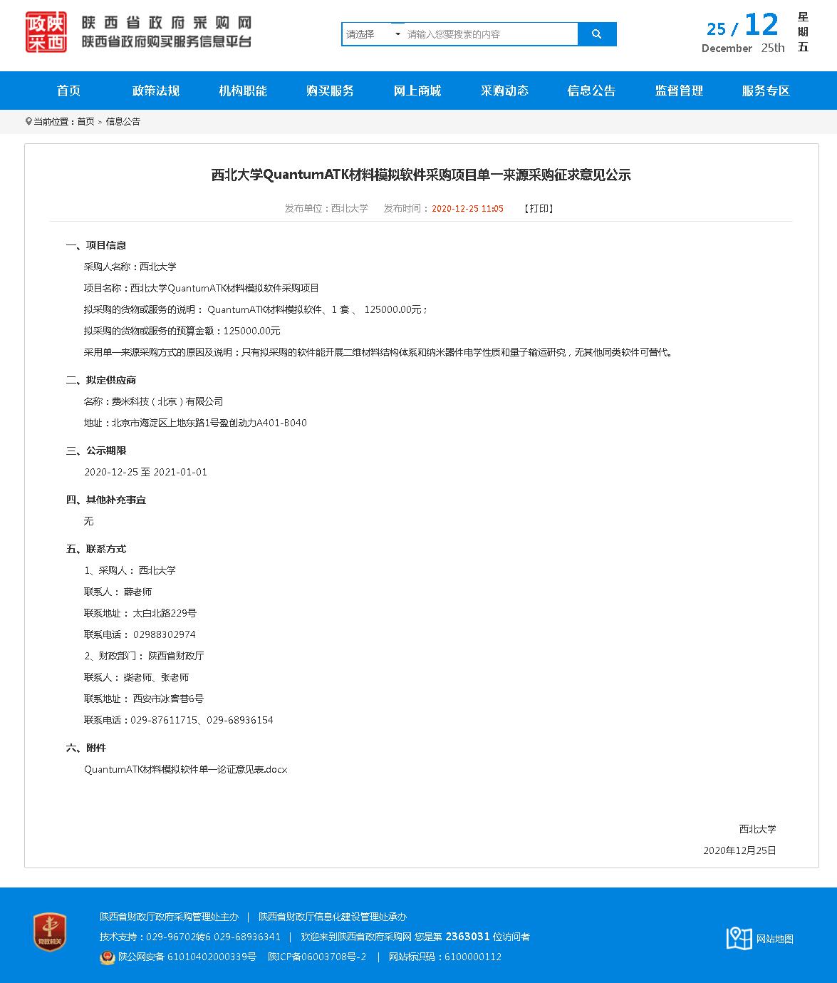 MILAN.COMQuantumATK材料模拟软件采购项目单一来源采购征求意见公示