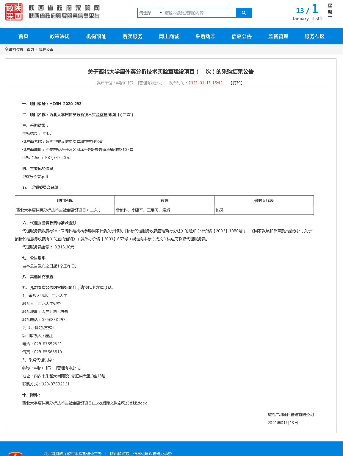 关于MILAN.COM唐仲英分析技术实验室建设项目(二次)的采购结果公告