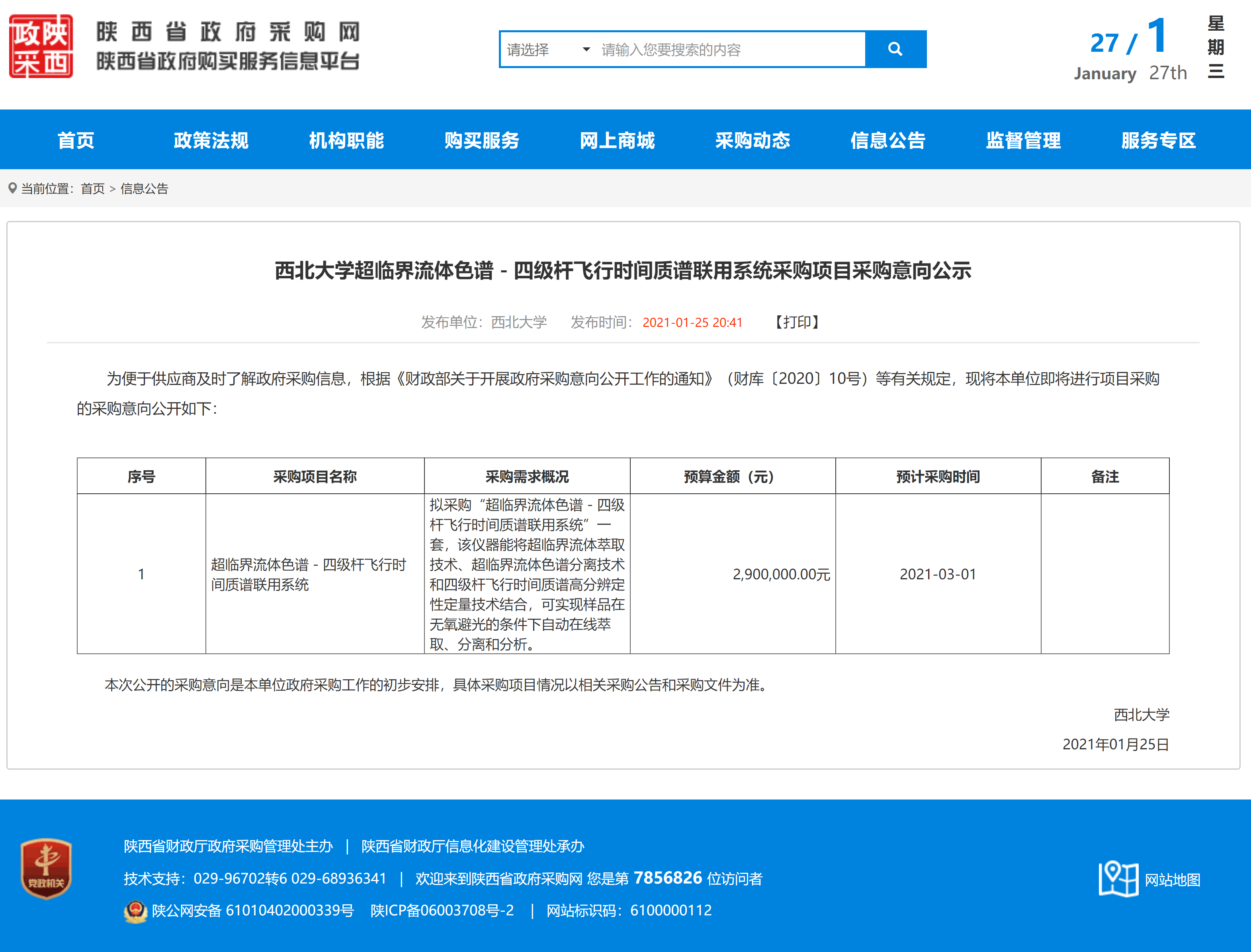 MILAN.COM超临界流体色谱-四级杆飞行时间质谱联用系统采购项目采购意向公示