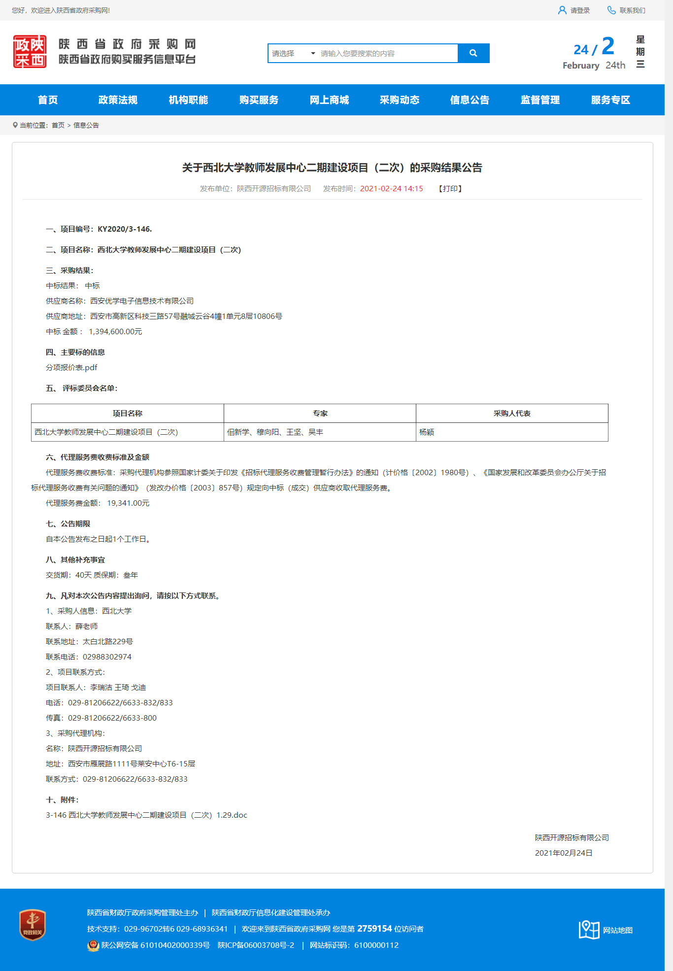 MILAN.COM教师发展中心二期建设项目(二次)的采购结果公告 作者: 编辑:薛利娟 时间:2021-02-24 原公告地址:http://www.ccgp-shaanxi.gov.cn/notice/noticeDetail.do?noticeguid=8a85be3477b2ecb70177d2a0f8a67706