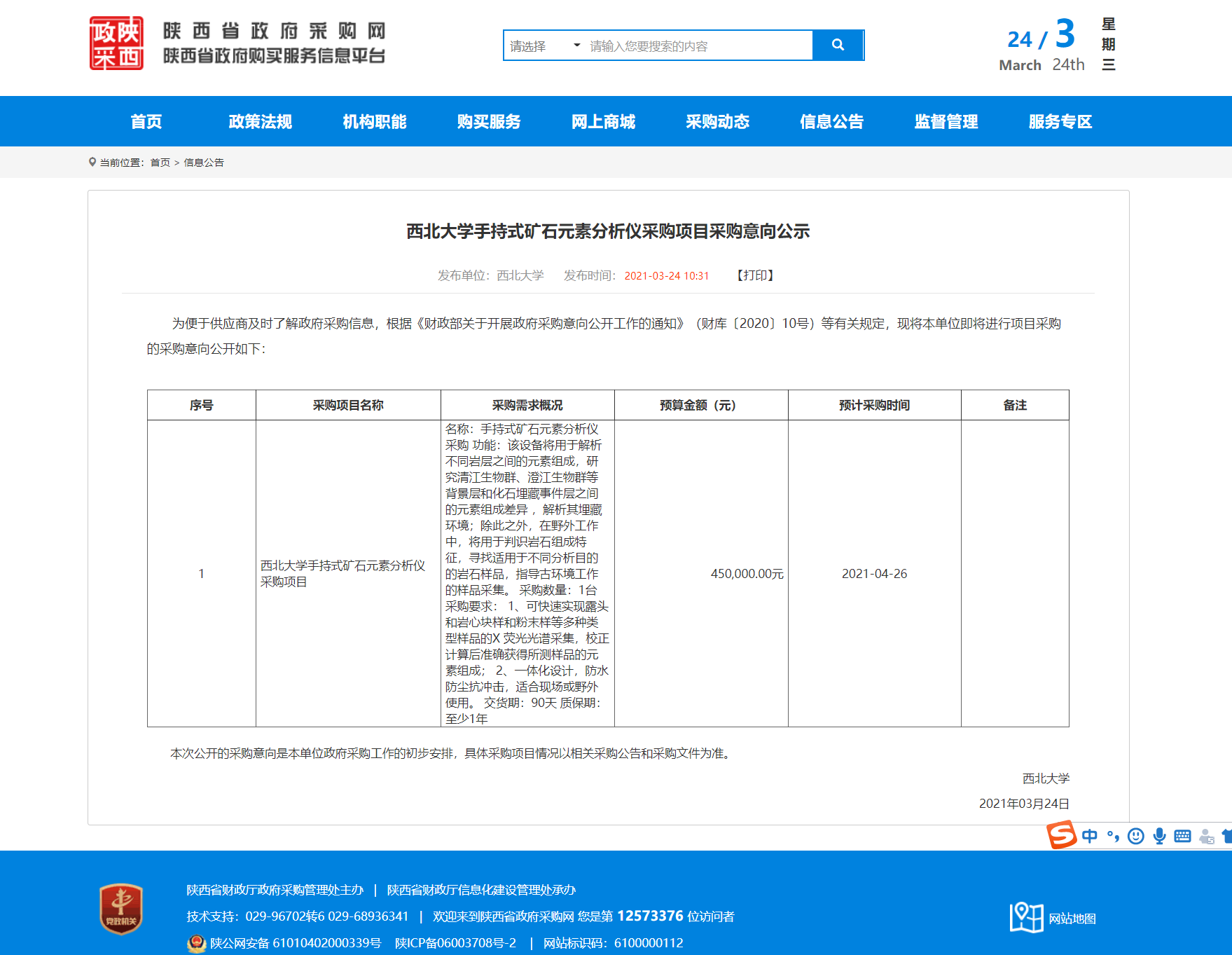 MILAN.COM手持式矿石元素分析仪采购项目采购意向公示