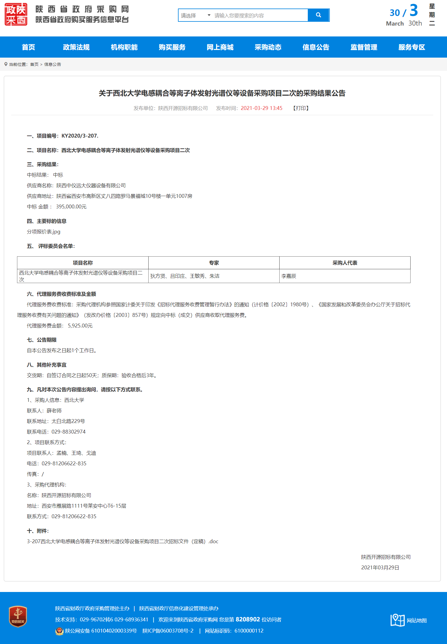 MILAN.COM电感耦合等离子体发射光谱仪等设备采购项目二次的采购结果公告