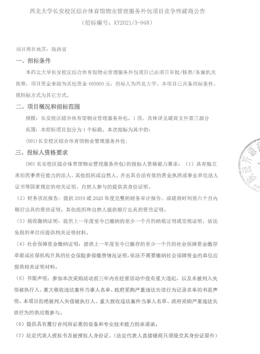 MILAN.COM长安校区综合体育馆物业管理服务外包项目竞争性磋商公告