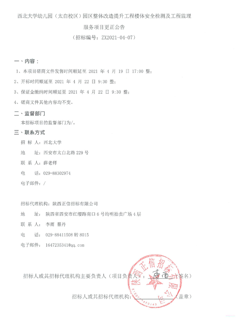 MILAN.COM幼儿园(太白校区)园区整体改造提升工程楼体安全检测及工程监理服务项目更正公告
