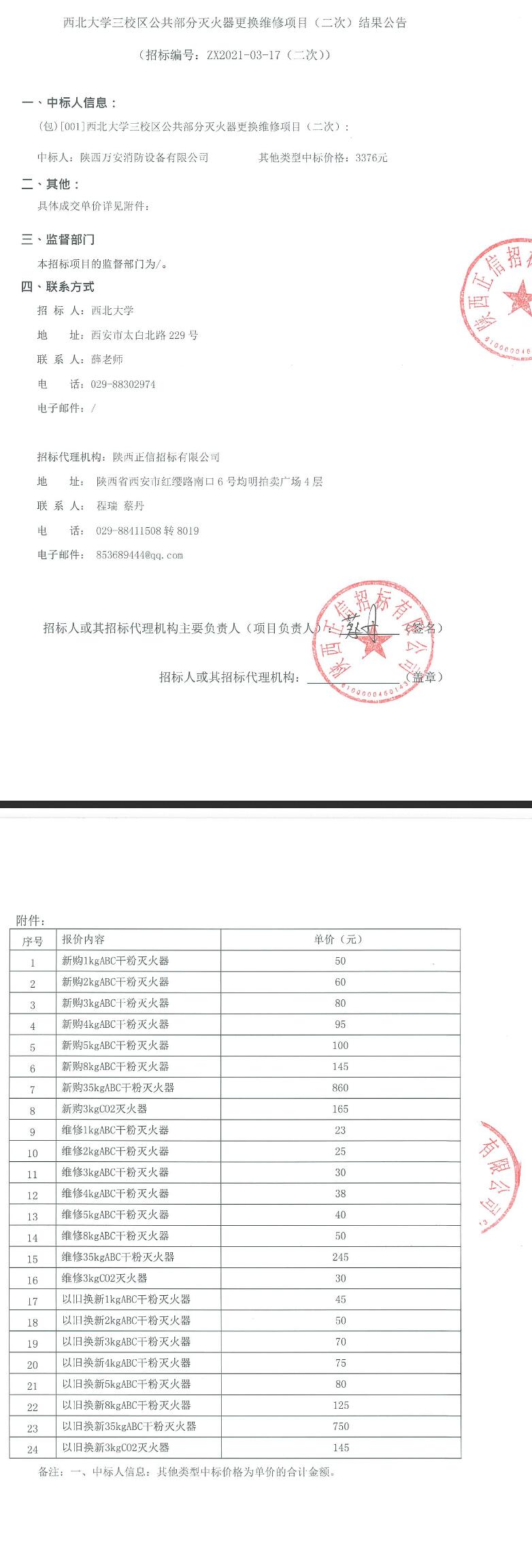 MILAN.COM三校区公共部分灭火器更换维修项目(二次)结果公告