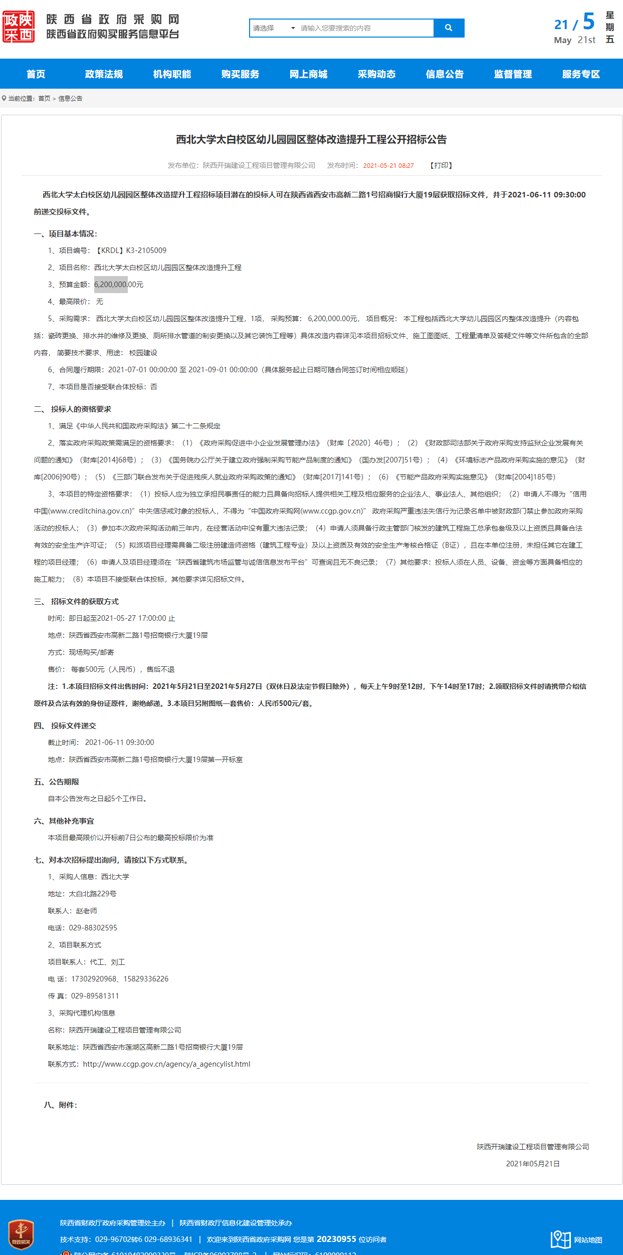 MILAN.COM太白校区幼儿园园区整体改造提升工程公开招标公告