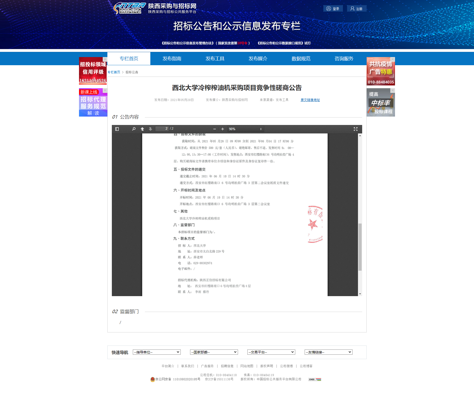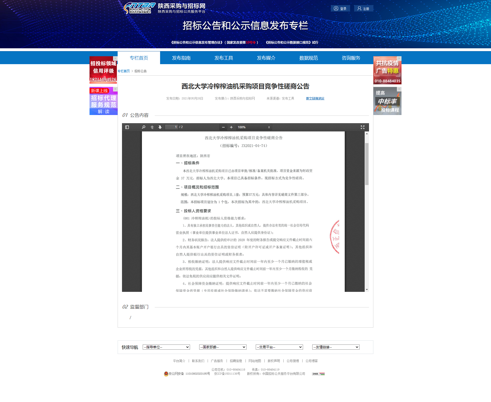 MILAN.COM冷榨榨油机采购项目竞争性磋商公告 作者: 编辑:薛利娟 时间:2021-05-28 原公告地址:http://bulletin.sntba.com/biddingBulletin/2021-05-28/302428.html
