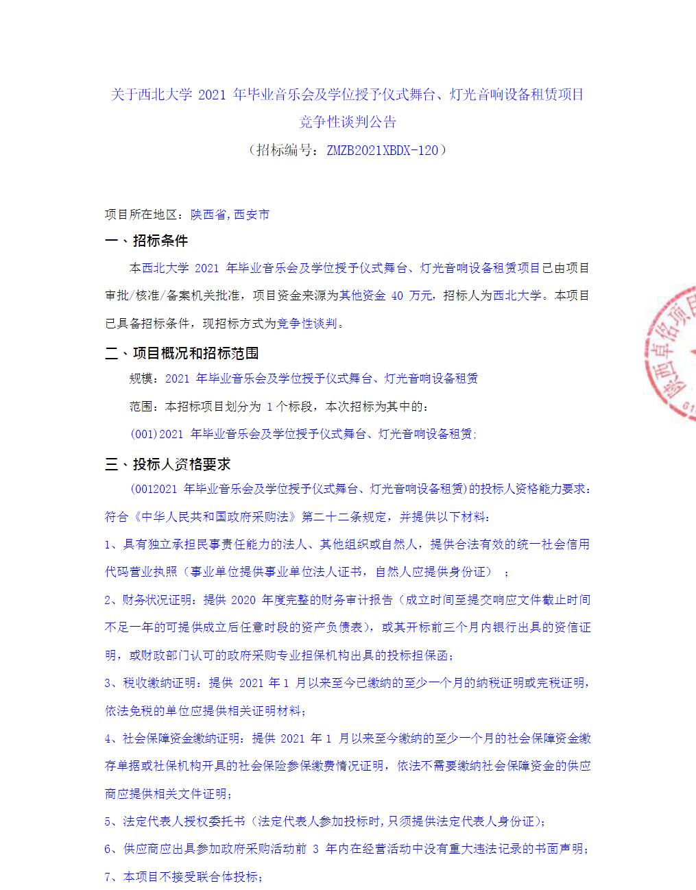 MILAN.COM2021年毕业音乐会及学位授予仪式舞台、灯光音响设备租赁项目竞争性谈判公告