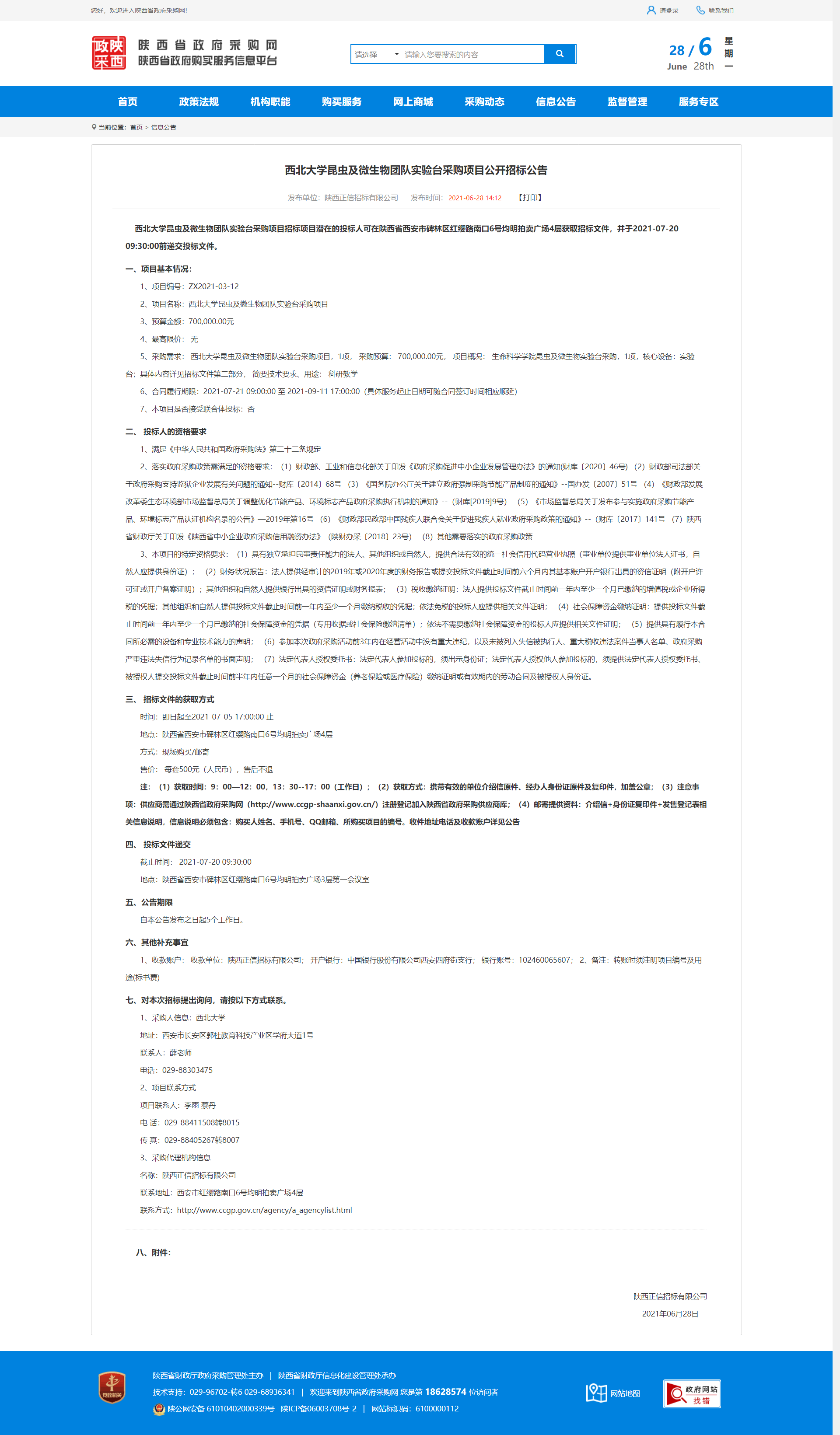 MILAN.COM昆虫及微生物团队实验台采购项目公开招标公告 作者: 编辑:采购与招标办公室 时间:2021-06-28 原公告地址:http://www.ccgp-shaanxi.gov.cn/notice/noticeDetail.do?noticeguid=8a85be33791baa0f017a50bb65eb2e2b