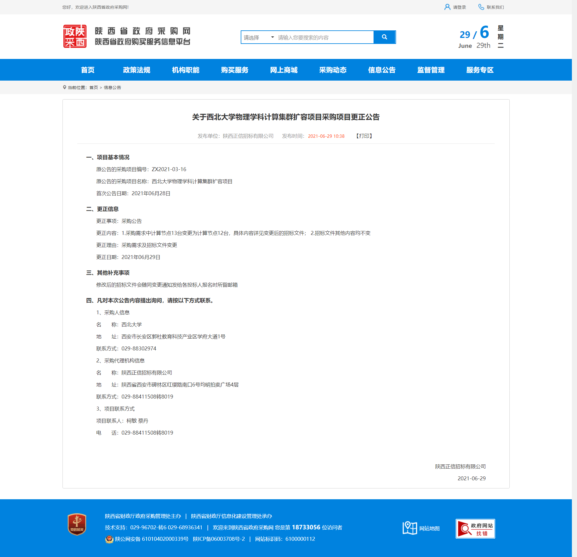 MILAN.COM物理学科计算集群扩容项目采购项目更正公告 作者: 编辑:采购与招标办公室 时间:2021-06-29 原公告地址:http://www.ccgp-shaanxi.gov.cn/notice/noticeDetail.do?noticeguid=8a85be33791baa0f017a529f9f2b60b3