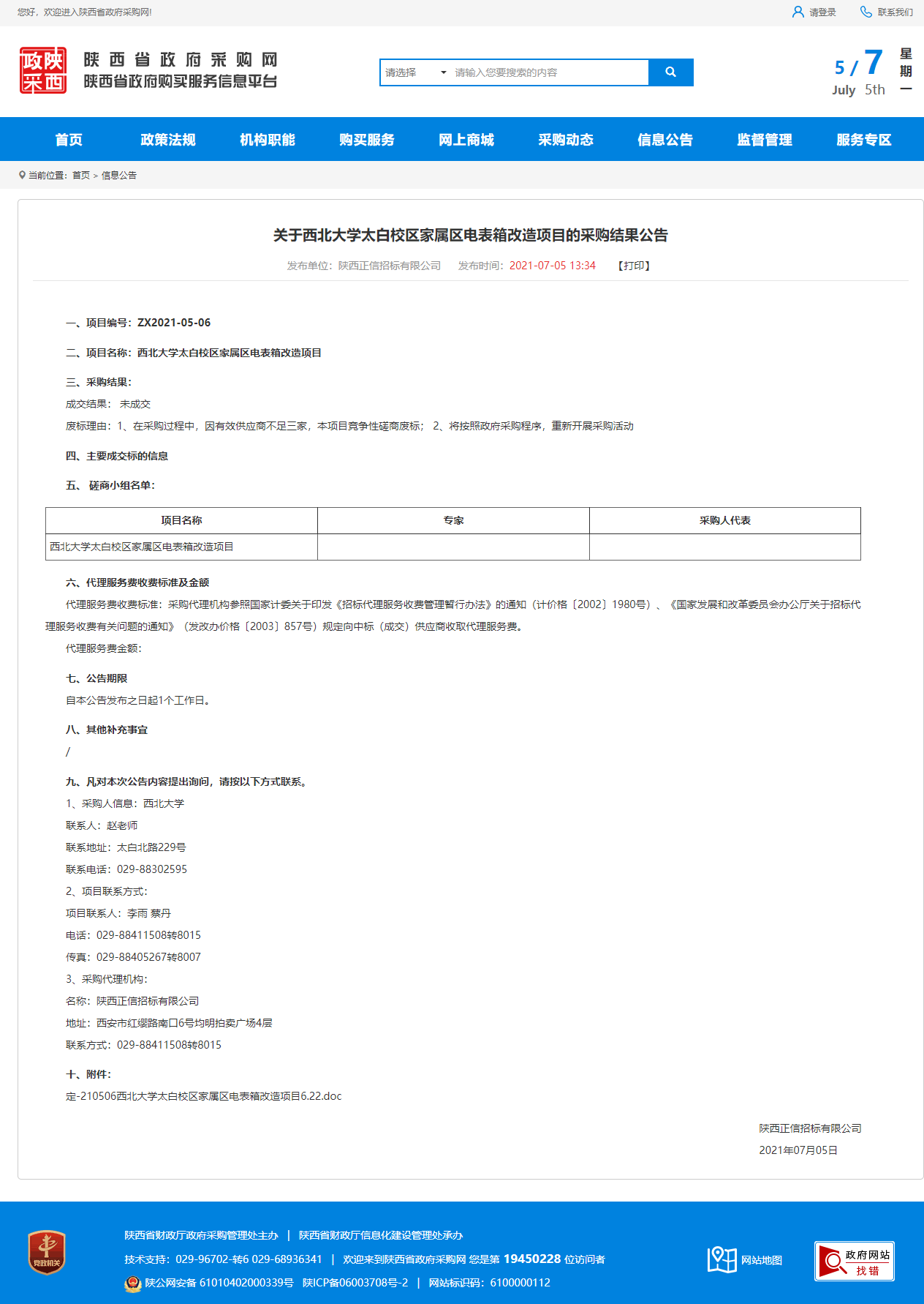 关于MILAN.COM太白校区家属区电表箱改造项目的采购结果公告