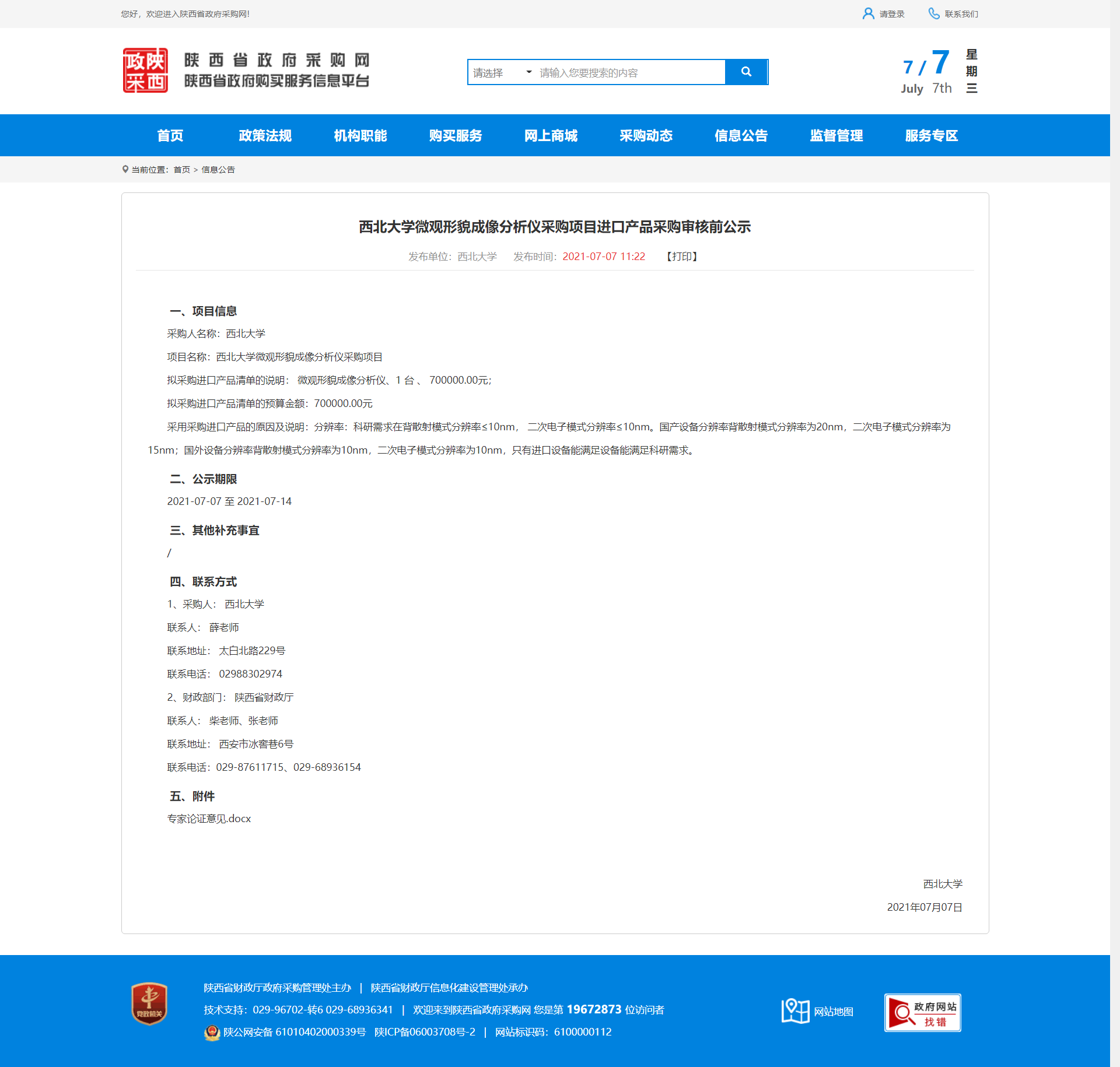MILAN.COM微观形貌成像分析仪采购项目进口产品采购审核前公示 作者: 编辑:采购与招标办公室 时间:2021-07-07 原公告地址:http://www.ccgp-shaanxi.gov.cn/notice/noticeDetail.do?noticeguid=8a85be337a79620e017a7e92b5872d92